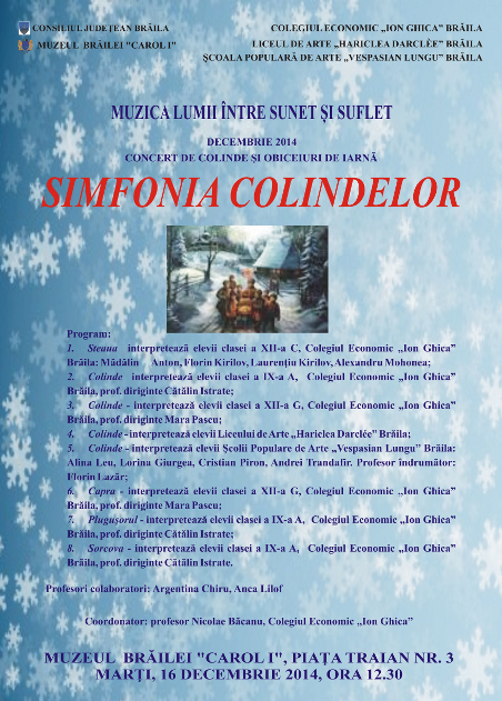 gazda unui concert de colinde şi obiceiuri de iarnă, organizat de Colegiul